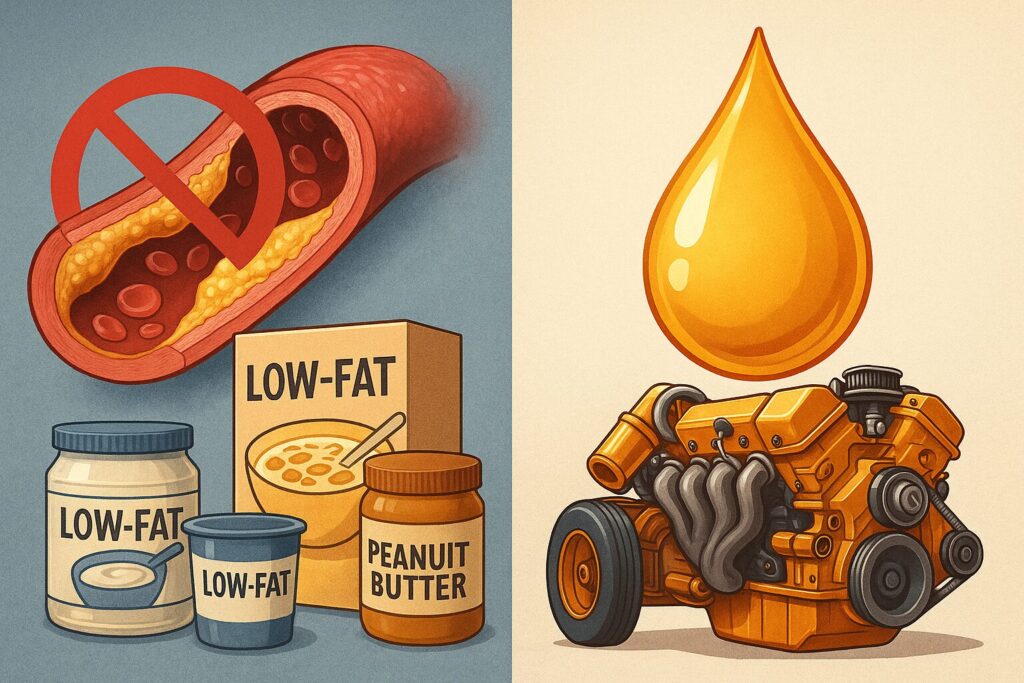 For decades, fat was demonized. Nutrition guidelines told us it clogged arteries, slowed us down, and made us fat. Food industries rushed to market “low-fat” everything — cereals, yogurts, even peanut butter. The result? People became hungrier, weaker, and sicker. The truth is that fat was never the problem. The problem was misunderstanding it.