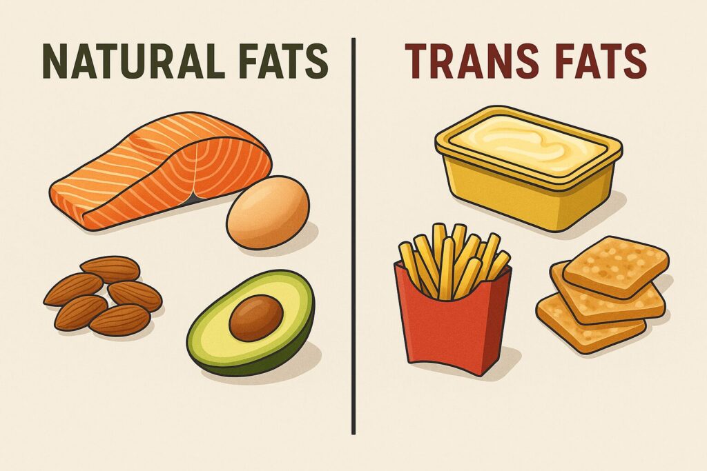 The quality of fat you eat defines its effect on your body. Not all fats behave the same. Natural fats from whole foods — like salmon, eggs, nuts, and avocados — promote vitality. Artificially processed fats — like margarine, fried oils, and hydrogenated snacks — undermine it.