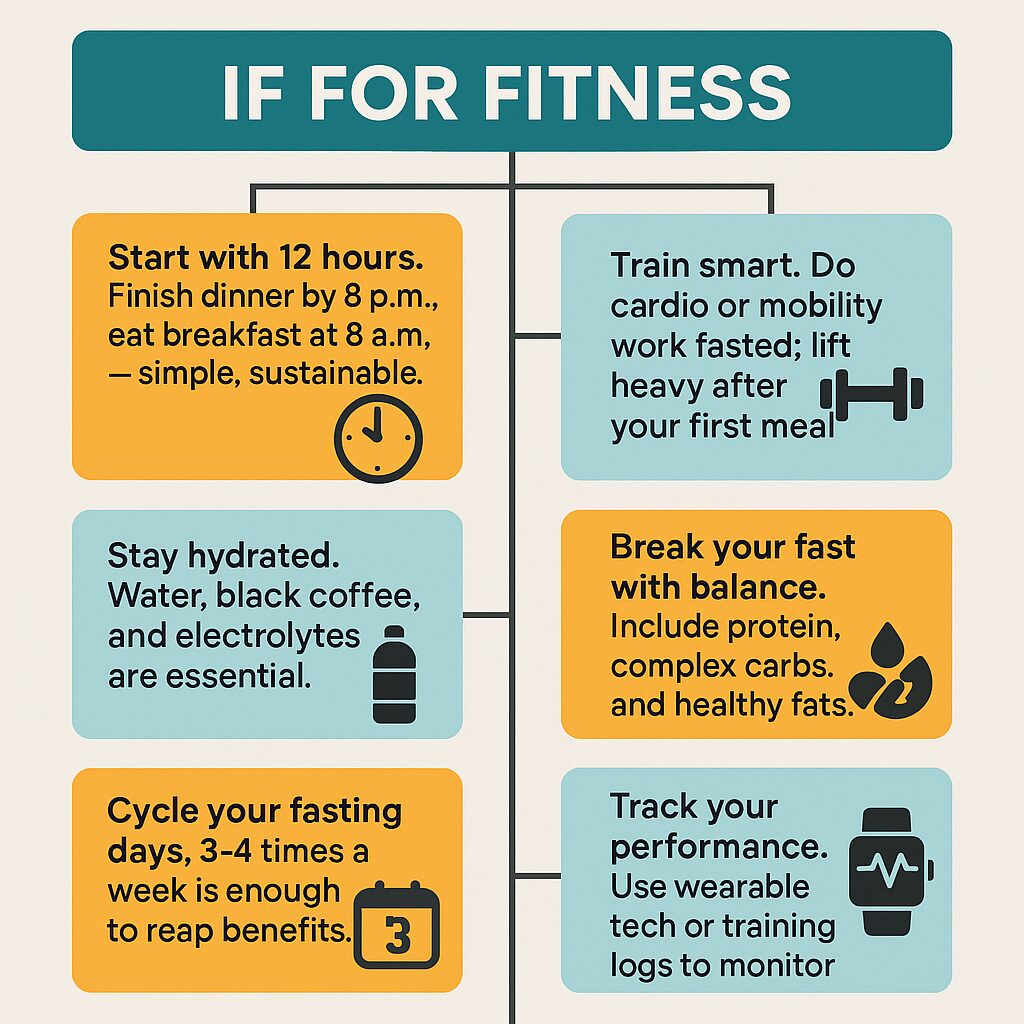 - Train smart. Do cardio or mobility work fasted; lift heavy after your first meal.