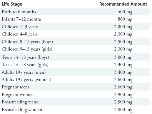 - Women: 2,600 mg per day
