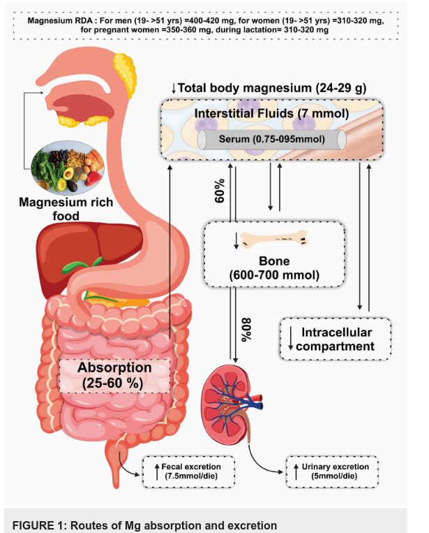 Additionally, magnesium supports nerve conduction, blood sugar regulation, and DNA/RNA synthesis. In the cardiovascular system, it maintains normal heart rhythm and vascular tone, lowering blood pressure and improving blood flow efficiency.